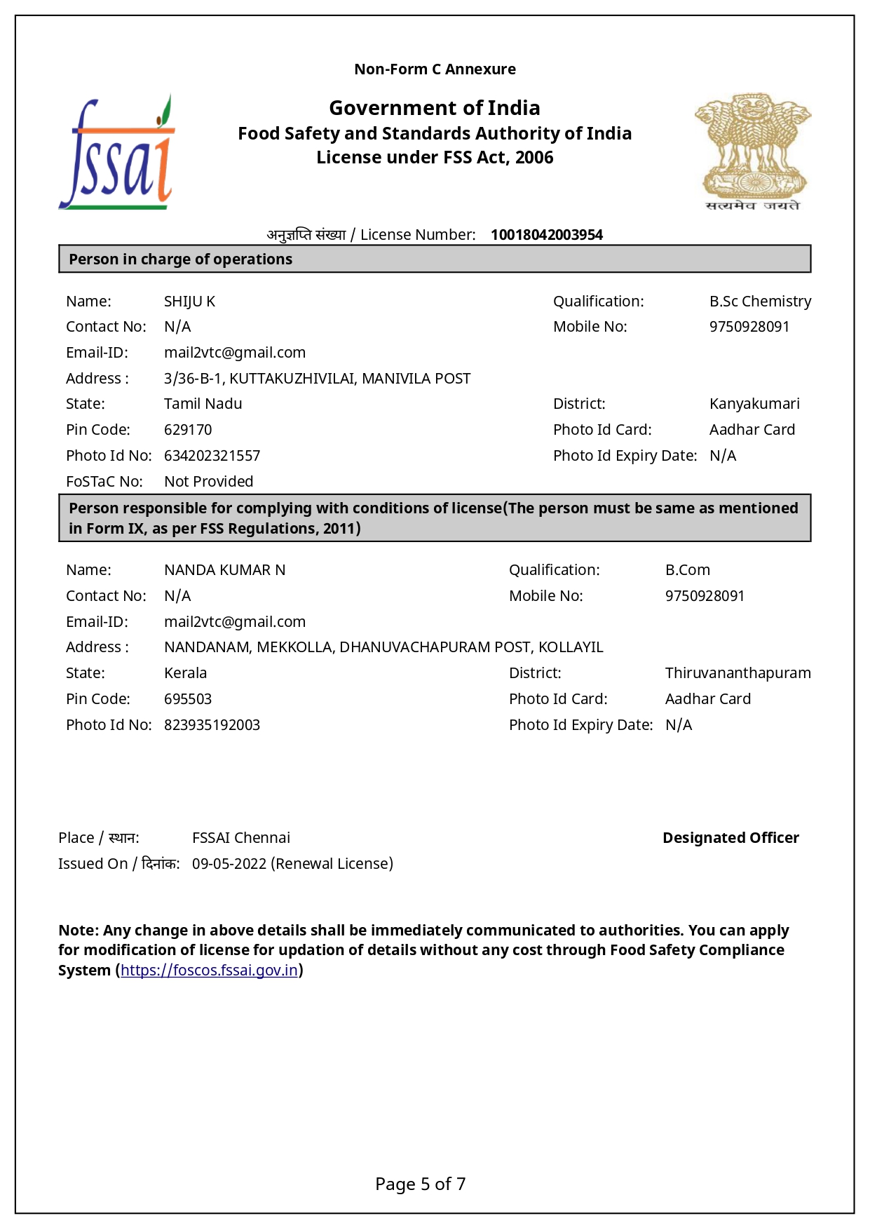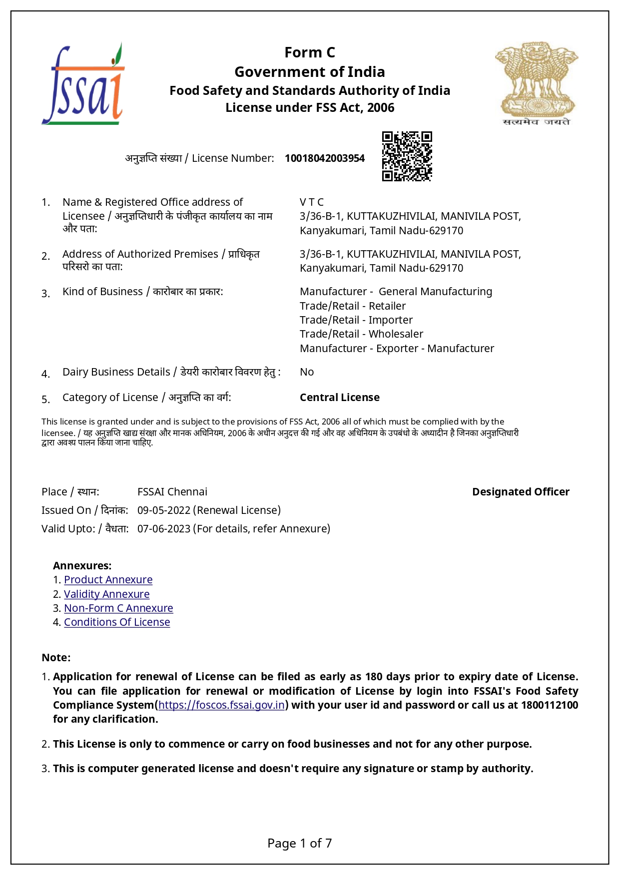 VTC DOOR NO: 3/36 B - 1 KUTTAKUZHIVILAI, MANIVILA P.O KANYAKUMARI, TAMIL NADU - 629170